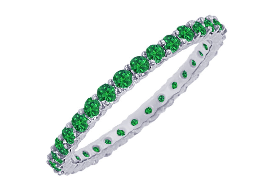 A fashionable circle eternity bangle surrounded with sparkling brilliant-cut round green emeralds are beautifully prong-set. Made in rich platinum & has a total gem weight (TGW) of 10.00 carat. Features