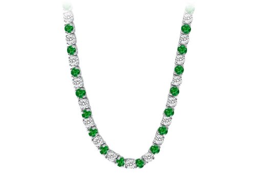 Fine Jewelry Vault UBNK16W14DE 14K White Gold Emerald Diamond Eternity Necklace 16 CT TGW