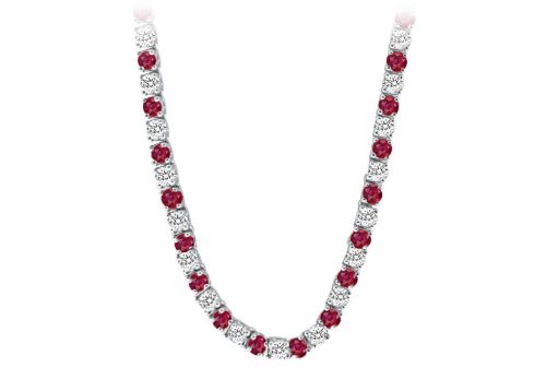 Fine Jewelry Vault UBNK16W14DR 14K White Gold Ruby Diamond Eternity Necklace 16 CT TGW