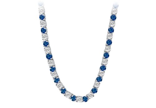 Features- Sparkling with alternately brilliant-cut round diamonds and blue sapphires eternity necklace in a 14K white gold prong-setting.